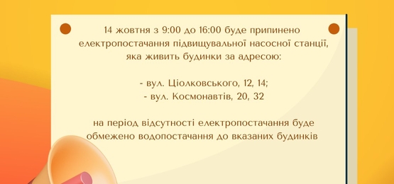 список адрес, за якими 14 жовтня буде призупинено водопостачання