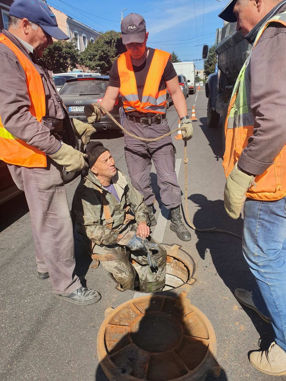 Для того, аби “вибрати” мотлох з колодязя, працівник мусить одягти спеціальний захисний костюм, страхову систему і спуститися на його дно. Глибина залягання каналізаційних труб — до 8 м, тобто фахівцям доводиться працювати у дуже складних умовах — загазованих 8-метрових колодязях.
