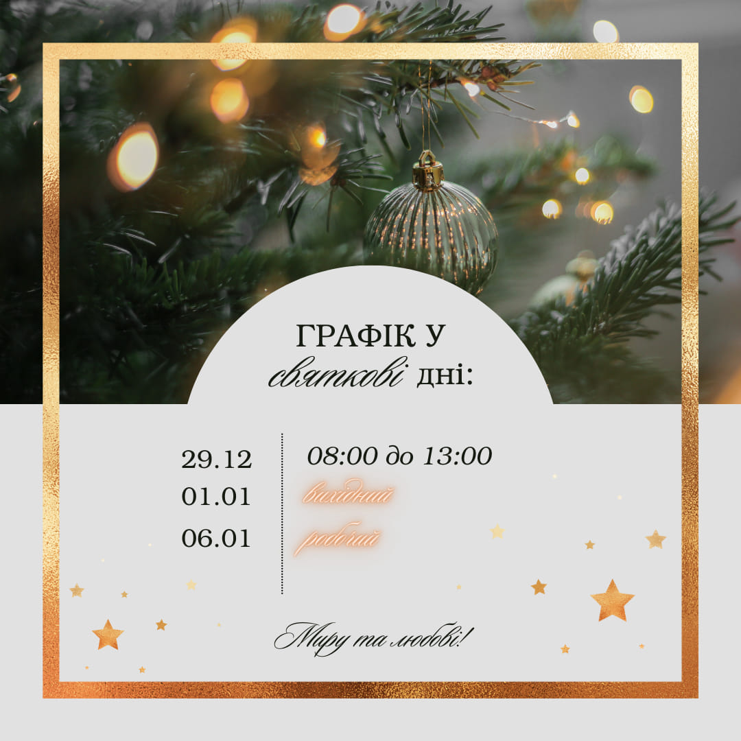 Шановні абоненти, зверніть, будь ласка, увагу на графік роботи фахівців управління у святкові дні: