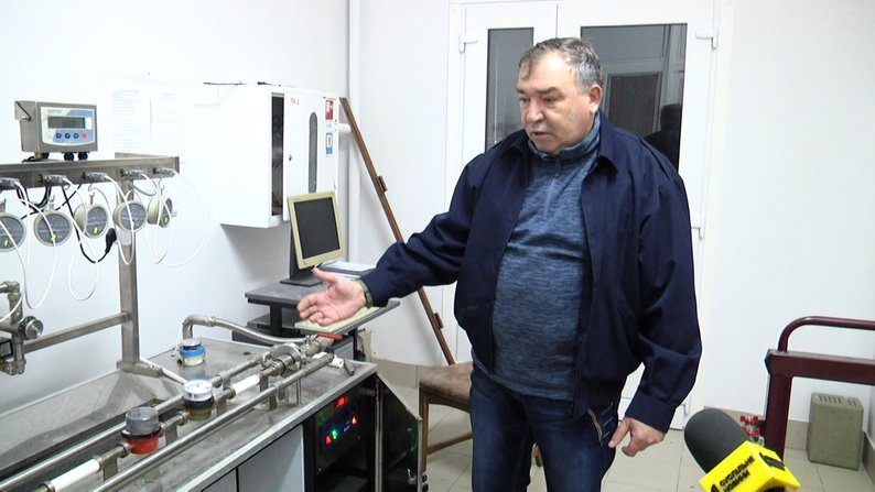 "Це у нас установка з перевірки лічильників води. Вона комп’ютеризована. Максимальна кількість лічильників 6 штук. Далі ми подаємо воду після того, як проходить процес промивання, видається протокол і визначається придатність засобу до подальшого використання", – розповів Юрій Северин.