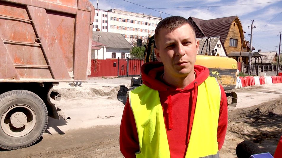 "Зараз ми переходимо вулицю Героїв Пожежних трубою, – каже підрядник Євгеній Горщук. – Зіткнулися зі складнощами – було підтоплення від існуючої залізобетонної труби. Виконали тимчасовий демонтаж трубопроводу, який був прокладений, тому що були аварійні ділянки, які треба було пройти. Зараз іде перекладка".