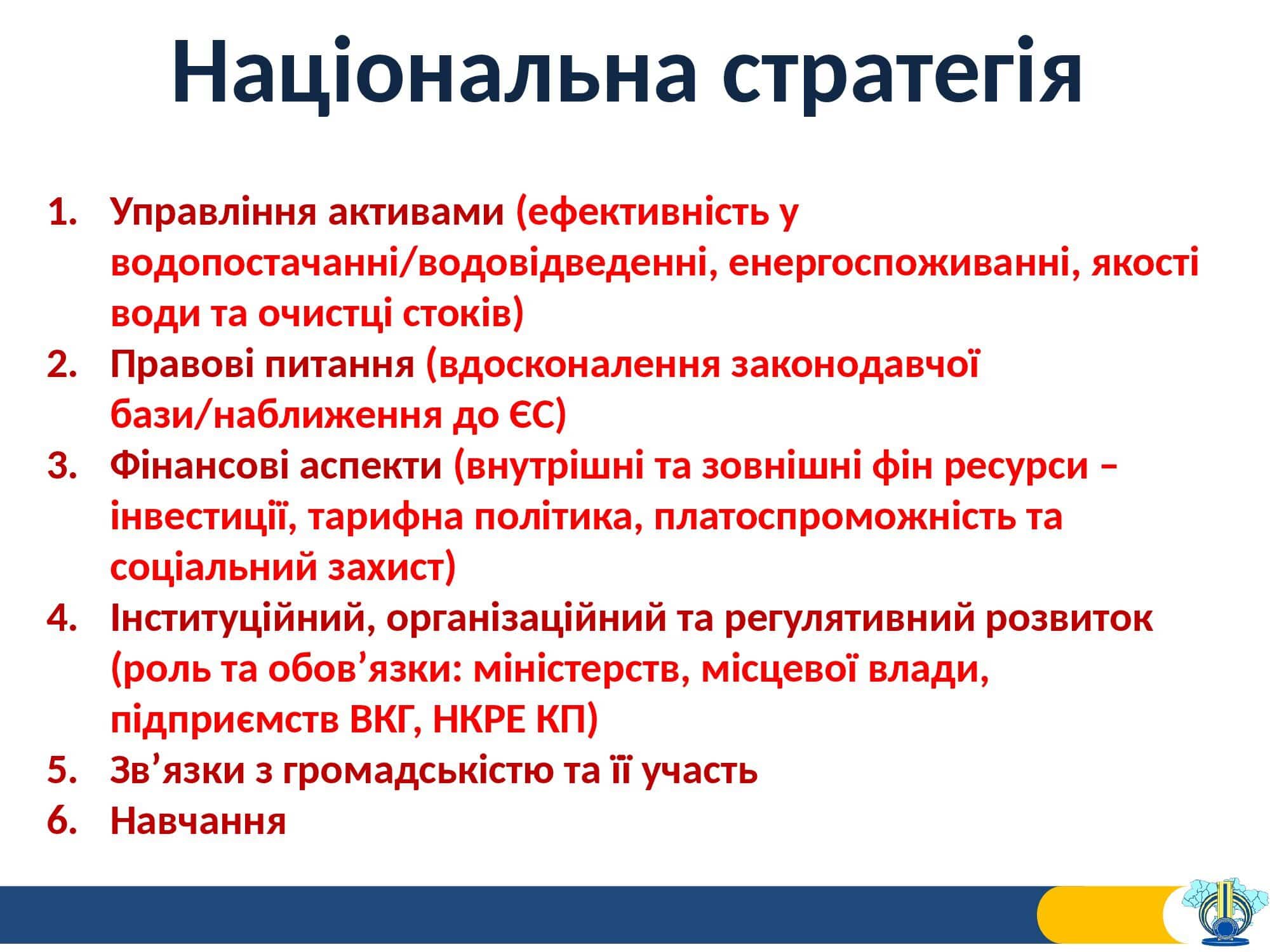 Якщо ми хочемо мати питну воду хорошої якості, чисте довкілля і краще здоров’я, то маємо стратегічно підходи до вирішення проблеми занедбаності однієї із найважливіших галузей, яка забезпечує нашу життєдіяльність. Шлях виходу із кризи, яку переживає водно-каналізаційне господарство, — якісне управління активами, розгалужена система місцевих стратегій водоканалів, яка дозволить гармонійно та синхронно модернізувати підприємства, узгодженість дій місцевої та центральної влади, якісна тарифна політика, навчання кадрів, здатних ефективно працювати у проєктах реконструкції очисних споруд та каналізації.