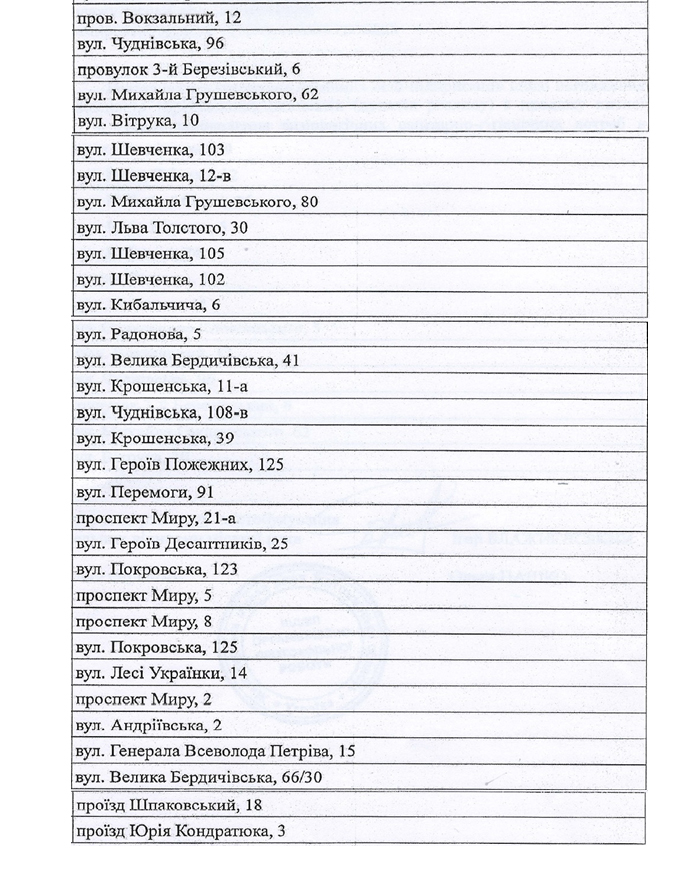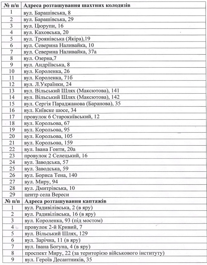 Жителі міста також можуть набрати воду у колодязях на території Житомира, які знаходяться за такими адресами: