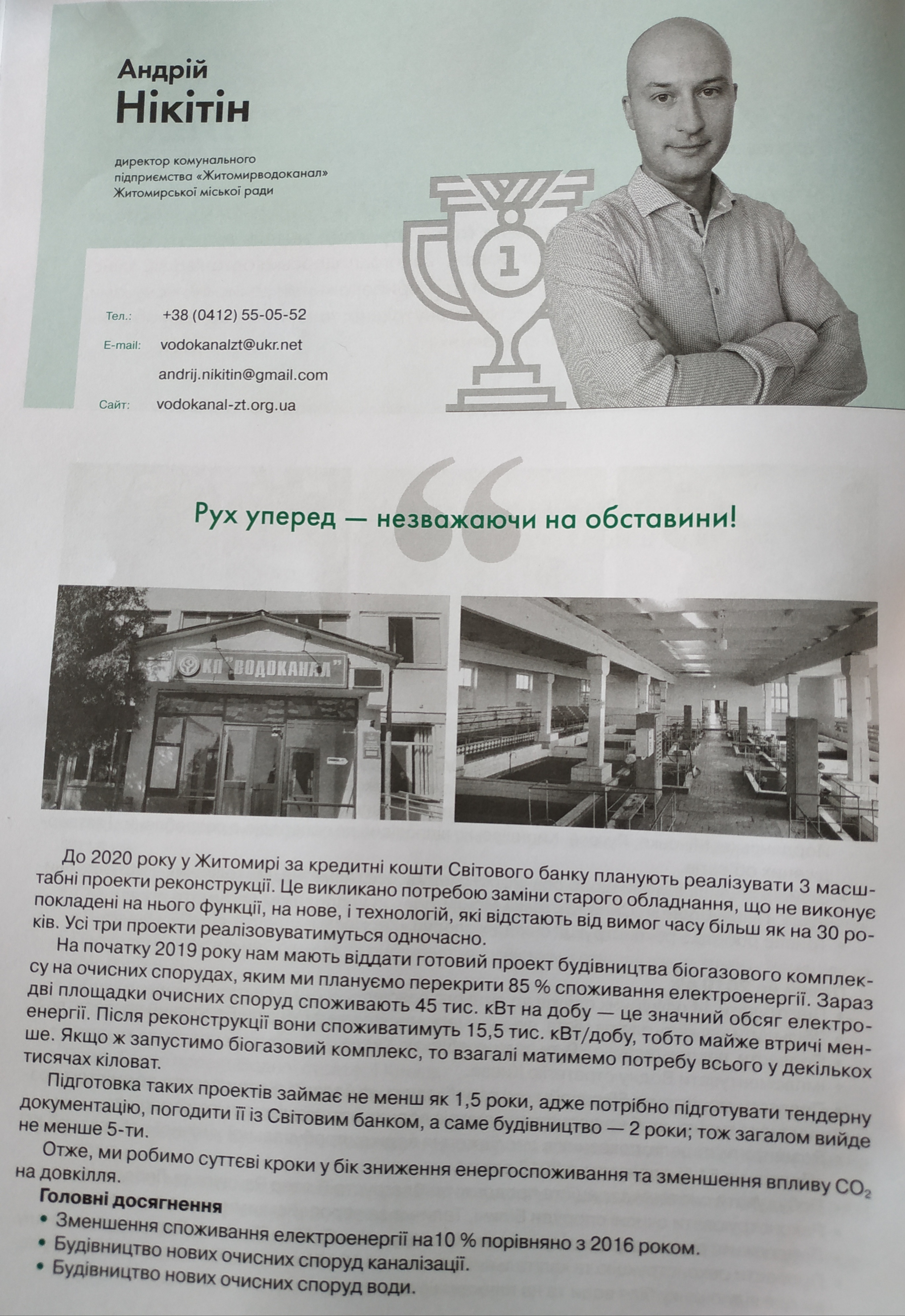 Директор КП "Житомирводоканал" став одним із 50 стейкхолдерів "зелених" змін - тих, хто протягом року впливав на екологічну політику держави та окремих підприємств, успішно долав перепони та знаходив рішення задля екологічної трансформації держави.