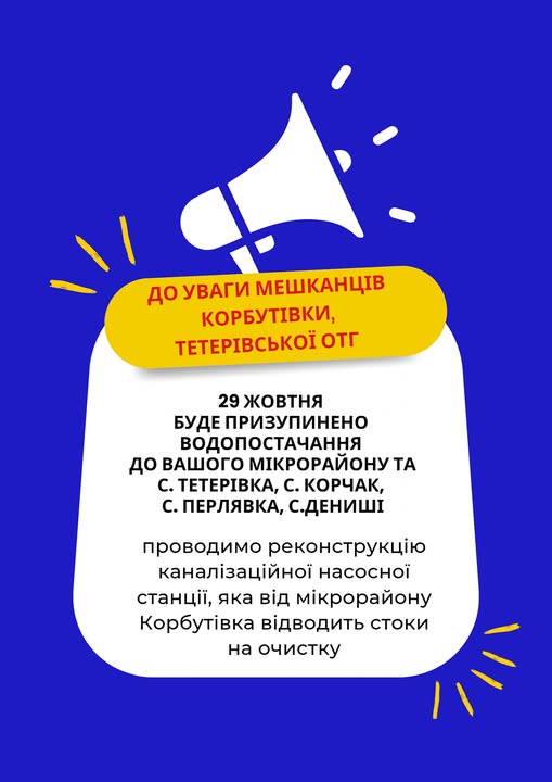 29 жовтня наші фахівці проводитимуть заміну напірних трубопроводів на каналізаційній насосній станції, що відводить стоки від мікрорайону Корбутівка.