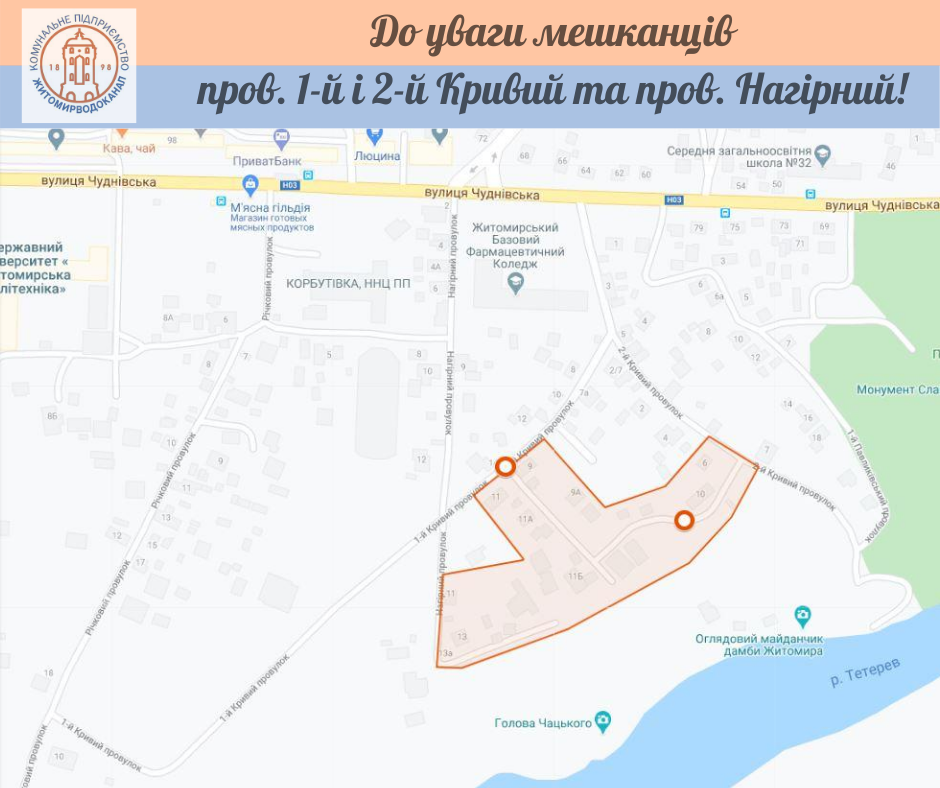 До уваги мешканців пров. 1-й та 2-й Кривий та пров. Нагірний!