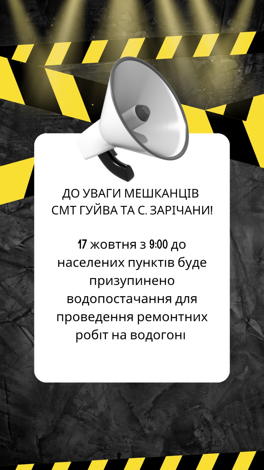 До уваги мешканців смт Гуйва, с. Зарічани, смт Новогуйвинське!