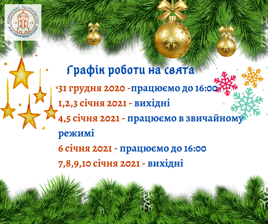 Графік роботи КП "Житомирводоканал" на свята