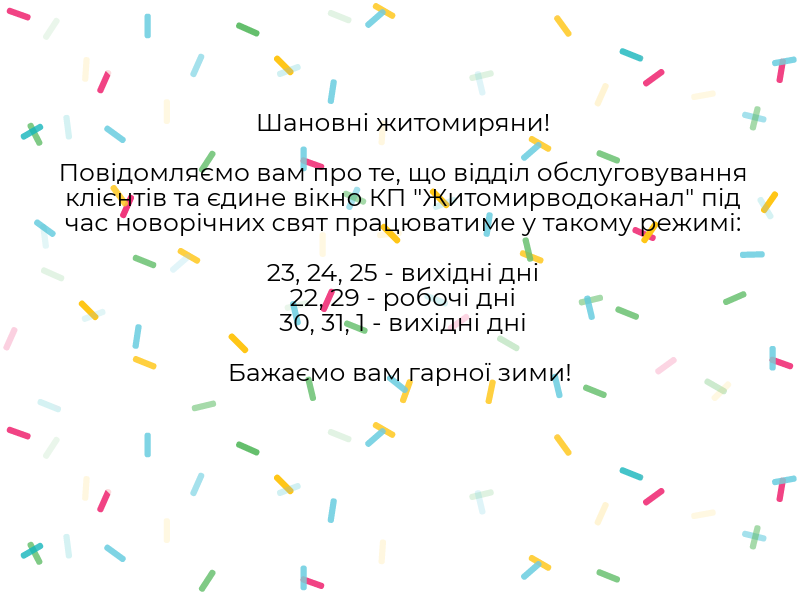 Графік роботи КП "Житомирводоканал" під час зимових свят
