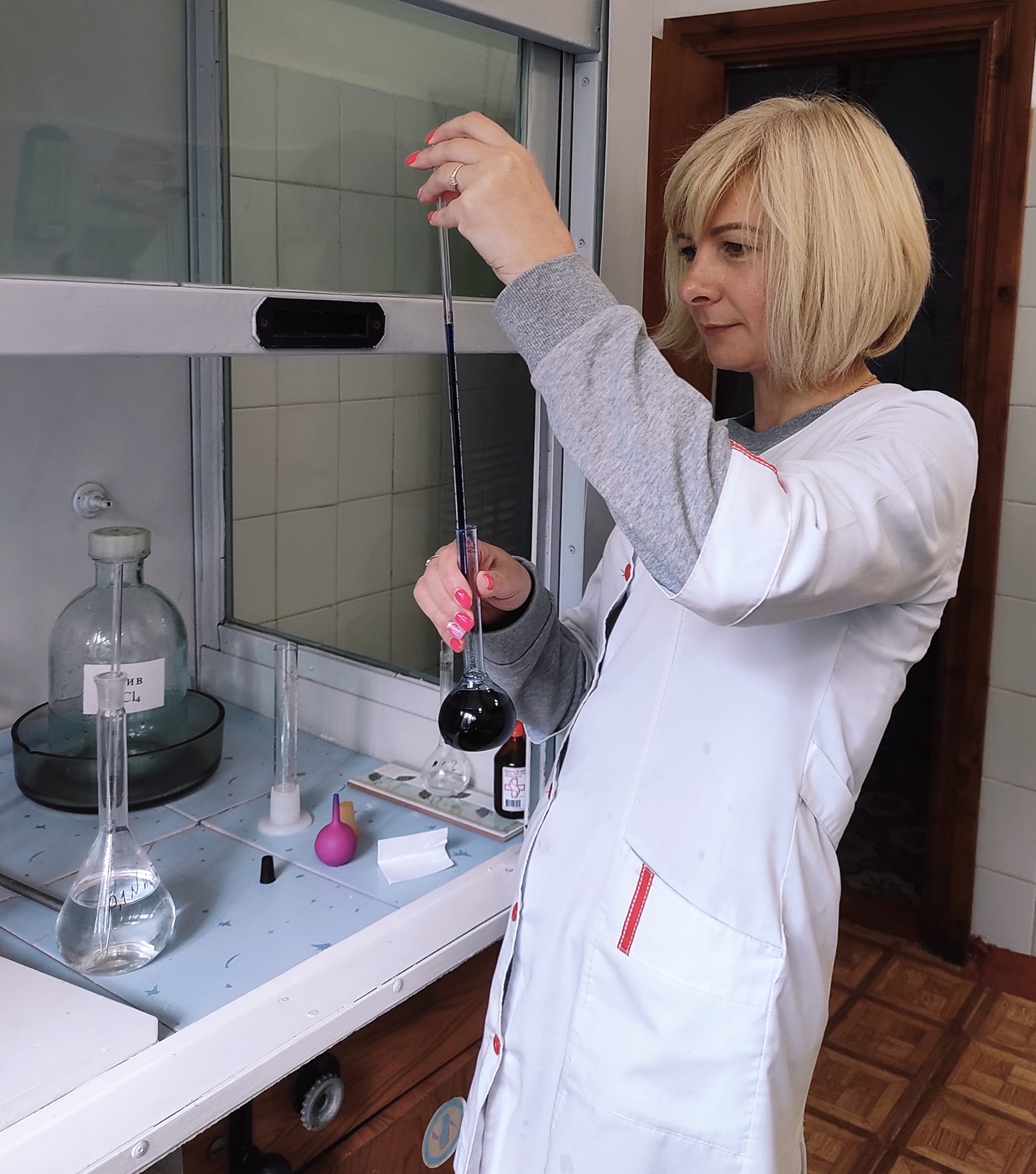 «У мене була перерва в роботі з 2016 по 2022 рік, але все ж таки мені знову захотілося повернутися на роботу. Я працюю лаборантом-хіміком 4 розряду і досліджую хімічні показники стічних вод підприємств, автомийок, закладів харчування, річки Тетерів. Щодня я проводжу близько 30-40 аналізів. На жаль, лише на поодиноких підприємствах у місті встановлено локальні очисні споруди. Більшість із них працюють без таких споруд, тому часто нам на очистку транспортуються забруднені стоки із підвищеним вмістом окремих забруднюючих речовин, таких як азот, фосфати, ХСК, залізо, завислі речовини. Нам однозначно потрібне більш суворе екологічне законодавство».