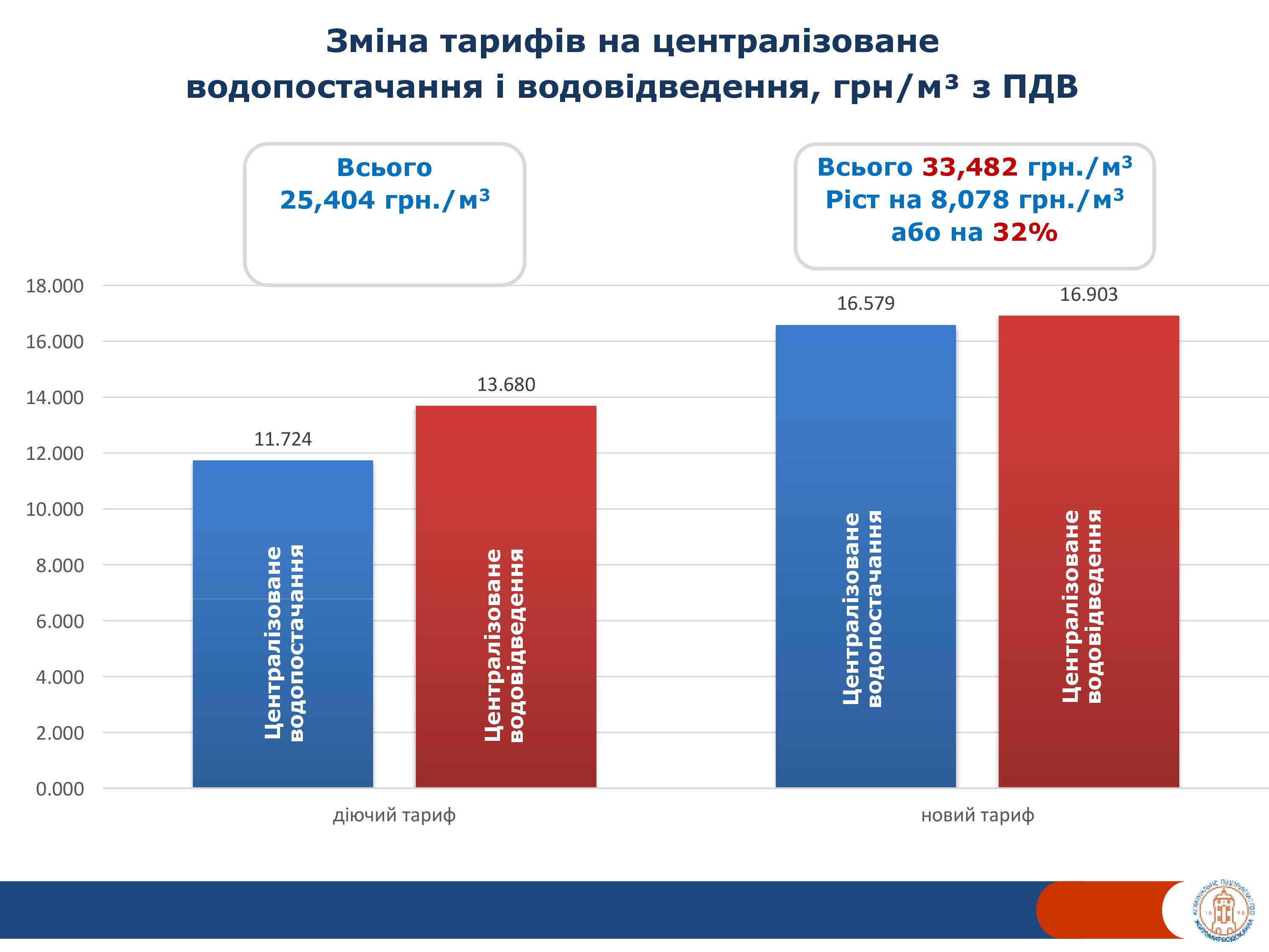 - централізоване водовідведення– зростуть на 24% (діючий тариф 13,680 грн/м³ з врахуванням податку на додану вартість).