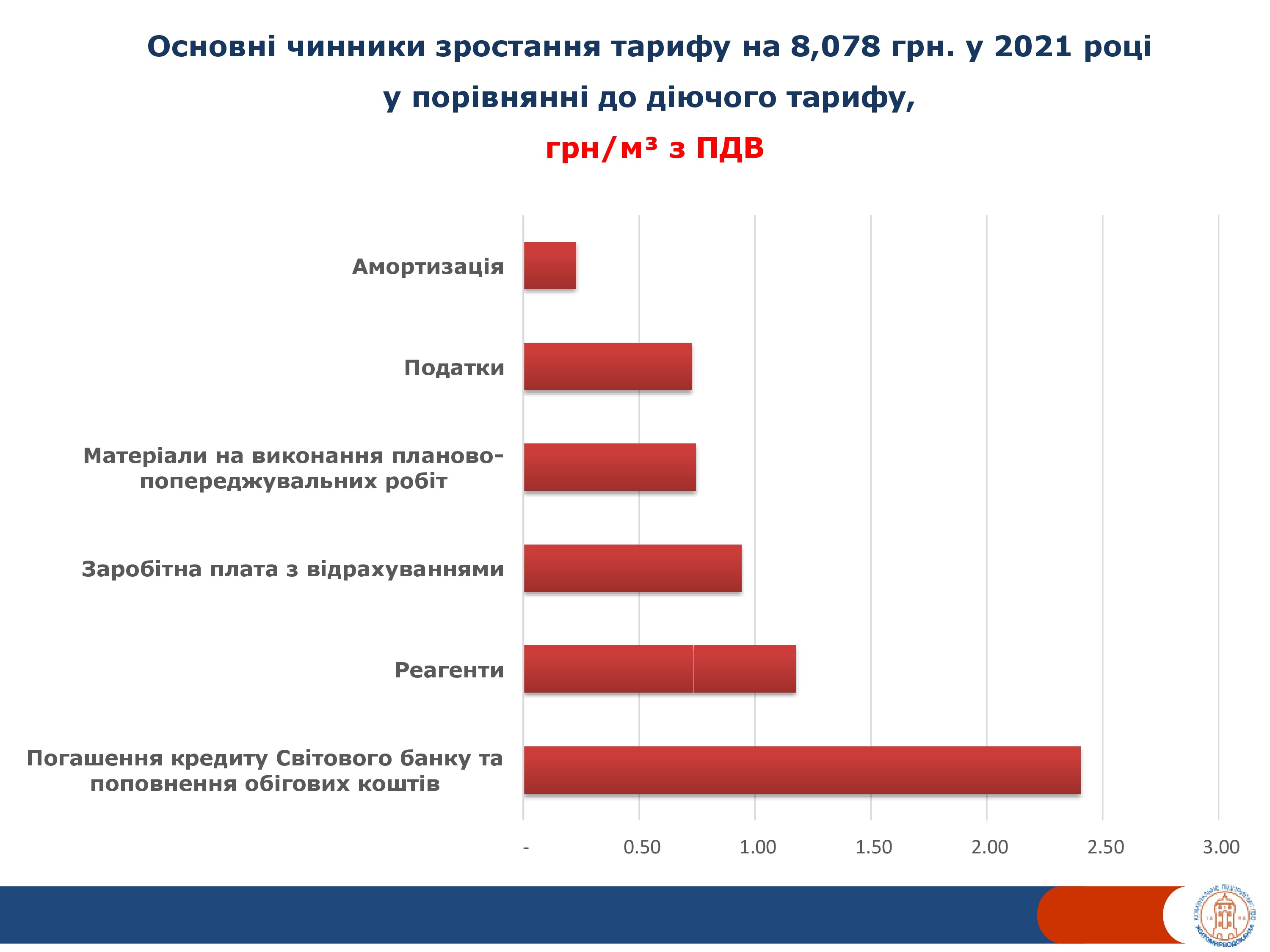 З часу встановлення тарифів на централізоване водопостачання та водовідведення відбулося/очікується зростання складових витрат на електроенергію, придбання реагентів, виконання планово-попереджувальних робіт, оплату праці та збільшенням видатків на сплату податків, зборів та інших витрат, передбачених Порядком формування тарифів. Крім того, у 2021 році КП «Житомирводоканал» продовжить сплату основної суми субкредиту в рамках спільного з Міжнародним банком реконструкції та розвитку проекту «Розвиток міської інфраструктури-2», очікувана сума до сплати у 2021 році становить 79,5 млн.грн., що збільшує рівень тарифу на 20%.