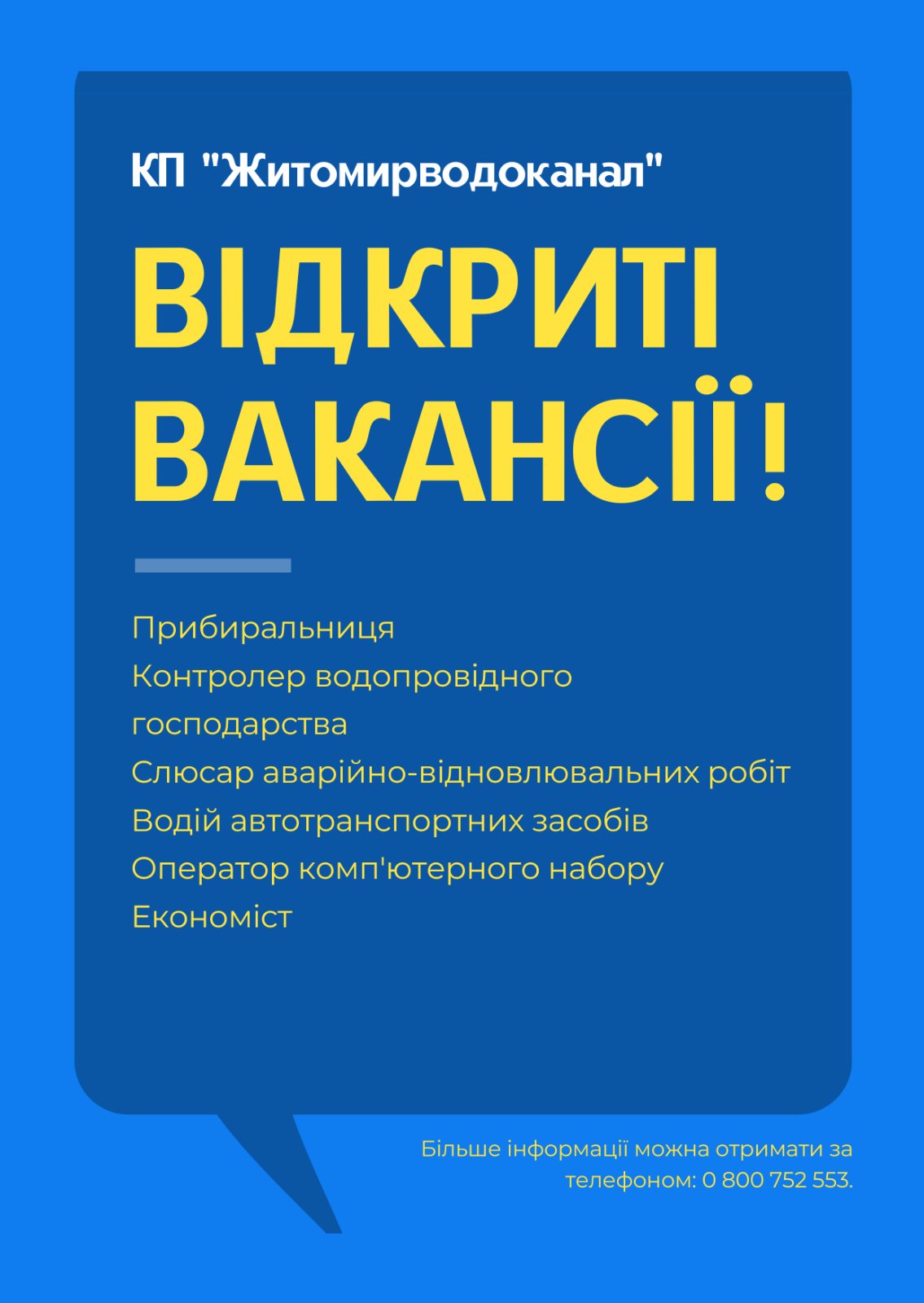 Деталі - за номером телефону: 0 800 752 553