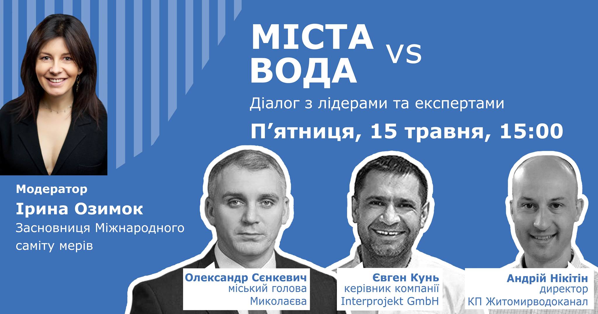 Водоканали - це "серце" міста, але переважно містяни не дуже розуміють, що там відбувається. Жителі міст дивляться на воду винятково як на тариф, не прогнозують та не відчувають "водних" ризиків. Модернізація водопостачання – це довгостроковий проект, а ефективність можна буде побачити лише протягом десятиліть. Отже, маємо кліматичний ризик і соціальний конфлікт водночас: люди хочуть чисту воду з крана, але не хочуть за це платити. Якщо не модернізувати водоканали та очисні споруди, відбувається забруднення річки, змінюється її "потенціал", зменшуються запаси води. Міській владі доводиться шукати ефективні рішення, звертатися по кредити Світового банку і відповідально та зріло говорити з громадою. Але тих, хто готові прийняти цей виклик, небагато. Що ж тоді робити? Ці питання будуть обговорені під час онлайн-зустрічі з очільником міста Миколаїв, Олександром Сєнкевичем, керівником компанії Interprojekt GmbH, Євгеном Куньом та директором комунального підприємства "Житомирводоканал", Андрієм Нікітіним. Діалог відбудеться 15 травня з 15:00 до 16:00.
