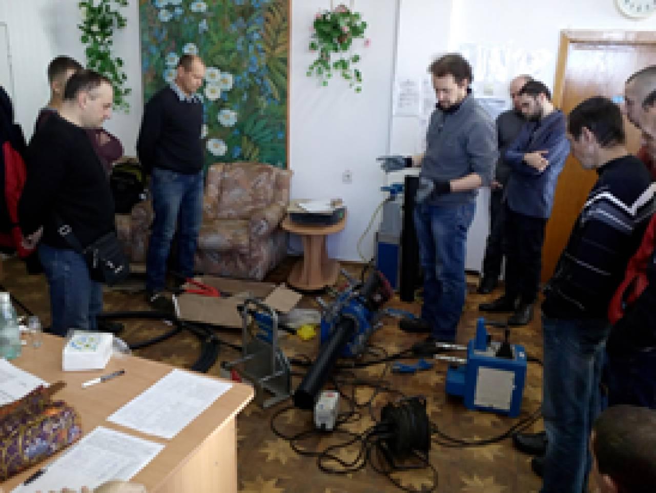 Під час практичної частини зварники навчилися та вдосконалили свої навички по зварюванню полімерних труб стиковим та терморезисторним методами на сучасному обладнанні швейцарської фірми Georg Fischer.