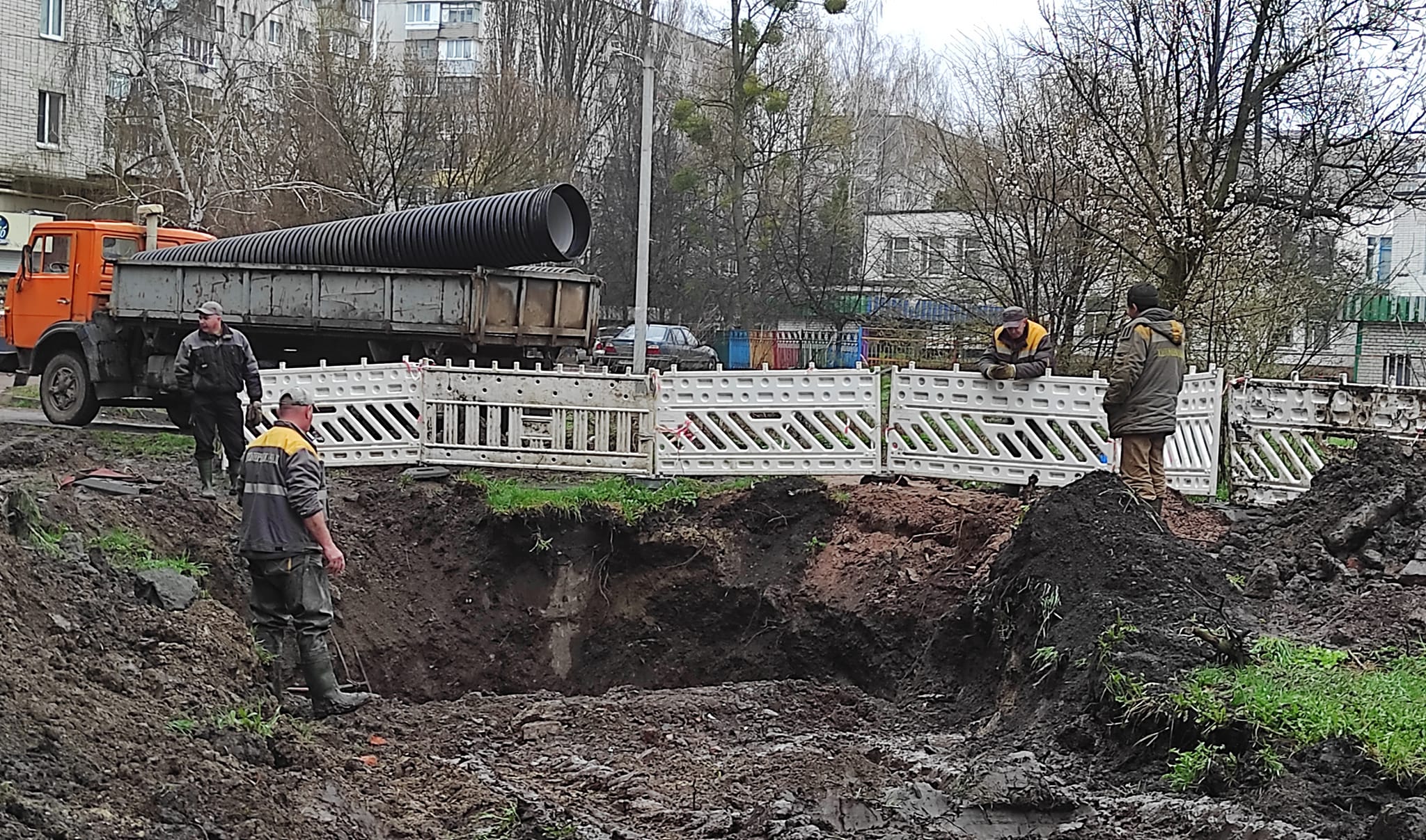 Поблизу будинків, що знаходяться на проїзді Тутковського, 4, 6, 8, проводяться роботи із відновлення каналізаційного колективу. Місце проведення робіт огороджено, але діти дуже часто підбігають до огороджувальних конструкцій і опираються на них.