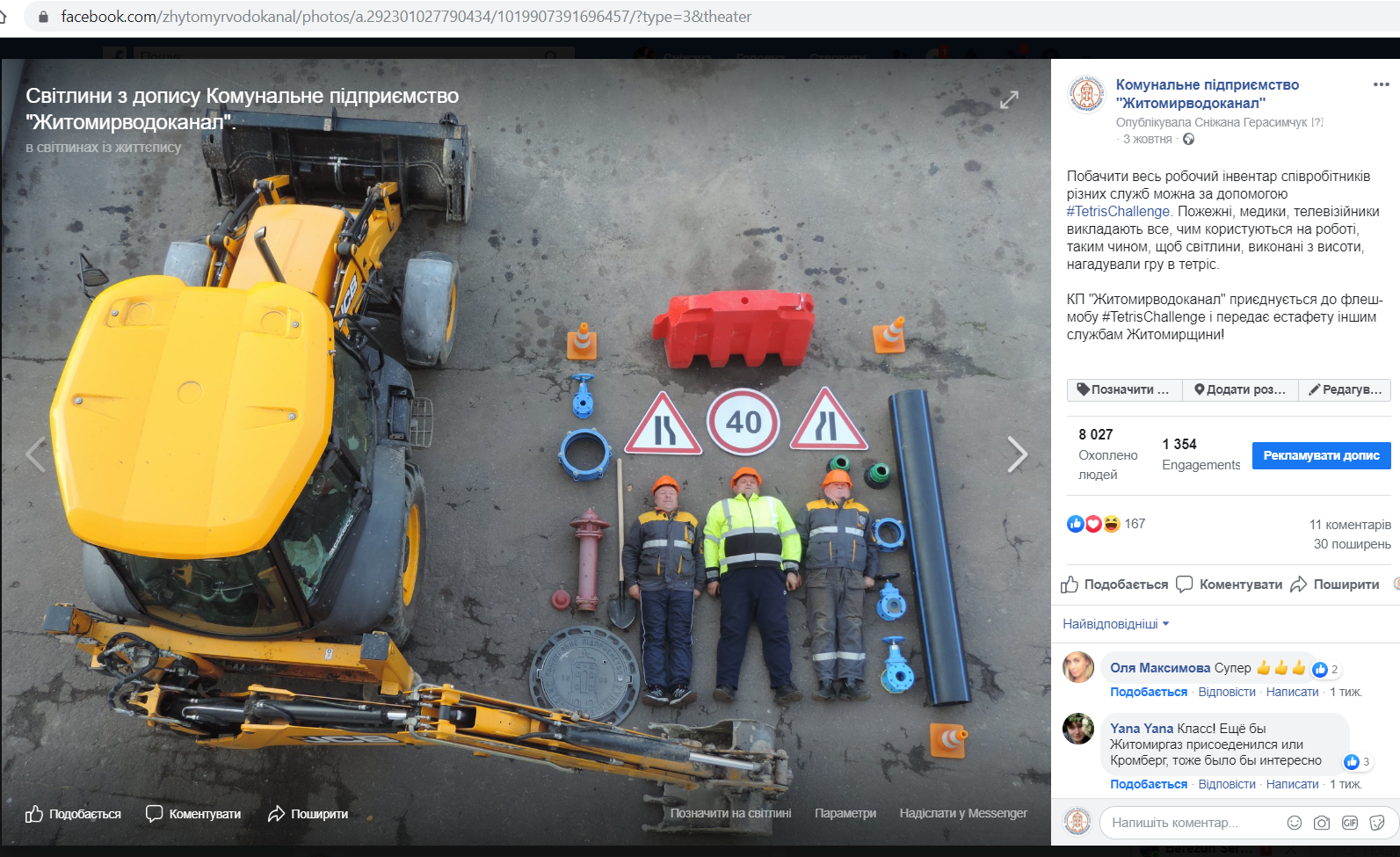 КП "Житомирводоканал" приєднався до Tetris Challenge. Метою ініціативи є демонстрація громадськості обладнання, які повсякчас використовує та чи інша служба у своїй роботі.