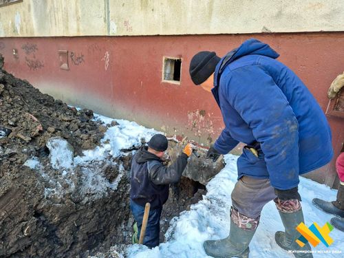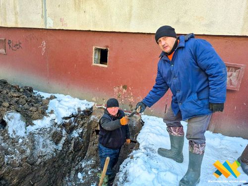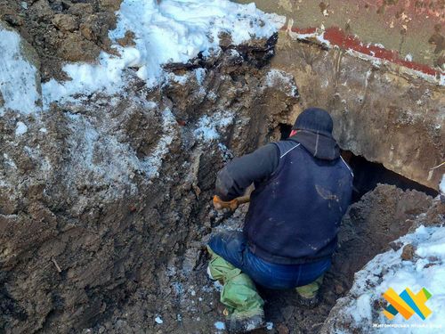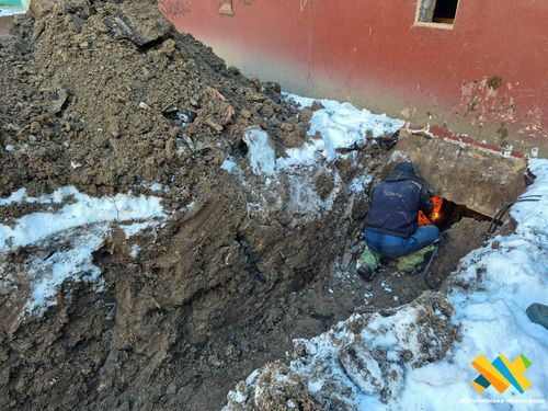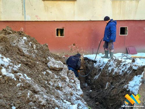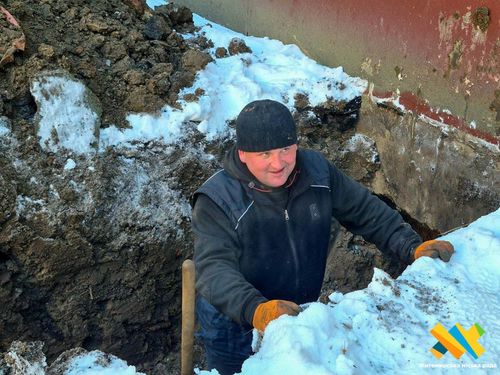 «Тут було три пориви. Труба дійшла до такого стану, що її вже неможливо відремонтувати. Ми її вже і латали, і варили, і хомути ставили, і замотували... Вона постійно протікала у прохідний канал. Замінюємо 20-метрову ділянку на нову, пластикову. Зараз вона у підвалі гріється, щоб стати гнучкою для монтажу. Ця робота не могла чекати до весни», — розповідає про об’єкт.