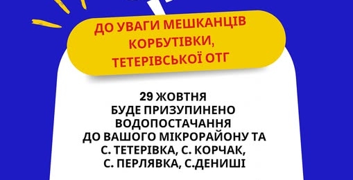 список адрес, за якими 29 жовтня буде призупинено водопостачання