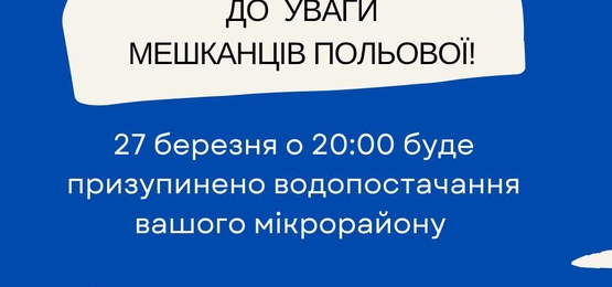 список адрес, за якими 27 березня буде призупинено водопостачання