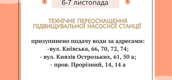 список адрес, за якими буде призупинено водопостачання 7 листопада