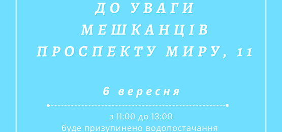 список адрес, за якими 16 вересня буде призупинено водопостачання