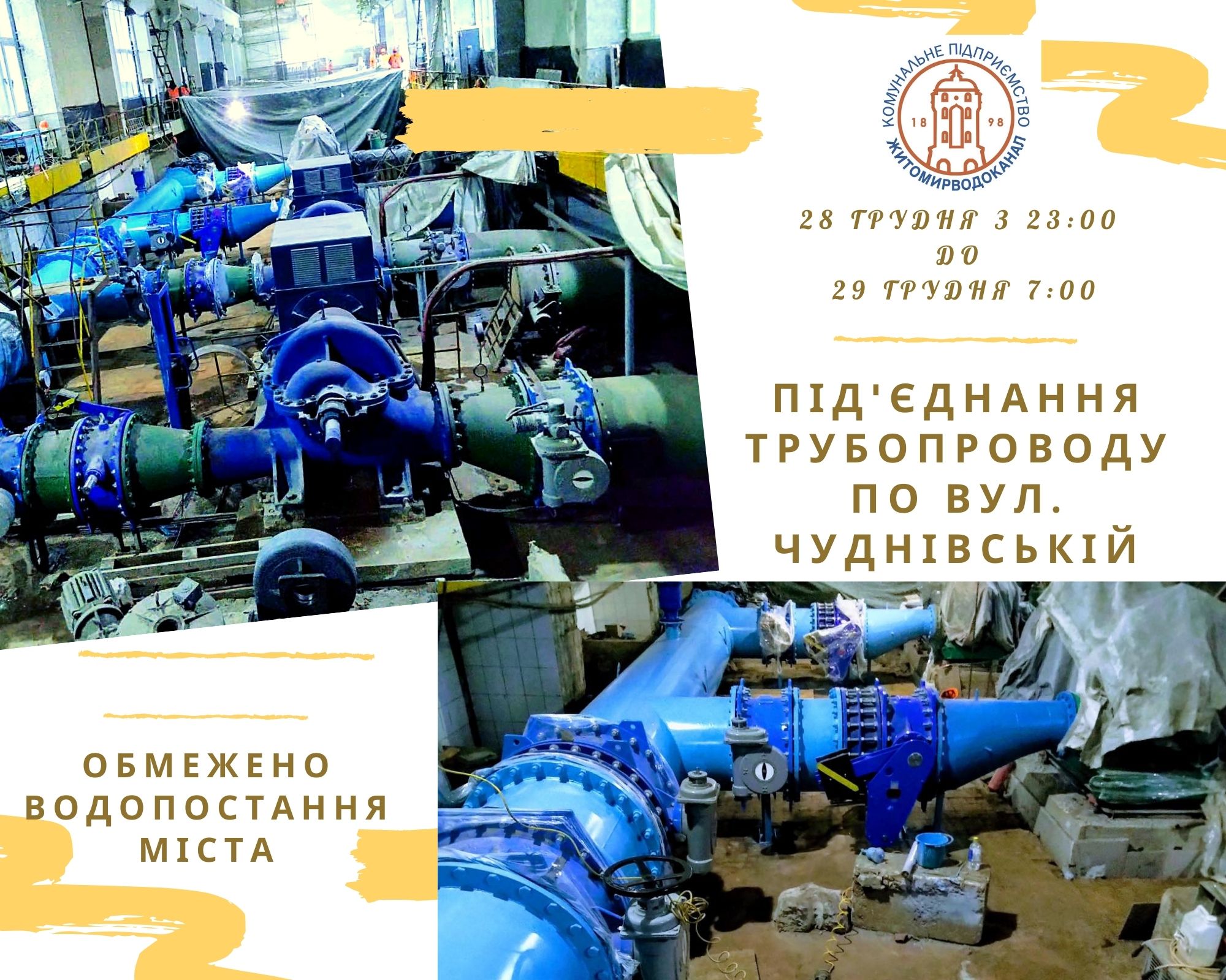 У нічний час доби підрядна організація проводитиме роботи з приєднання новопрокладеного трубопроводу на вул. Чуднівській.
