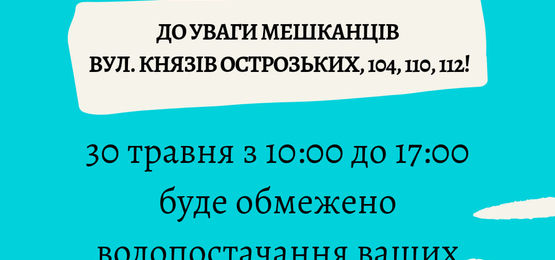 До уваги мешканців вул. Князів Острозьких, 104, 110, 112!