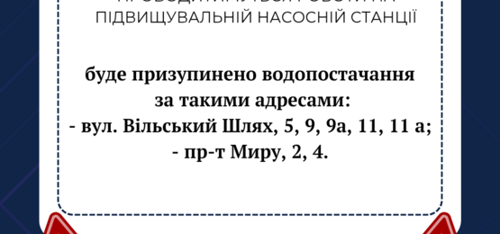 з 14:30 до 15:30 буде призупинено подачу води споживачам Польової