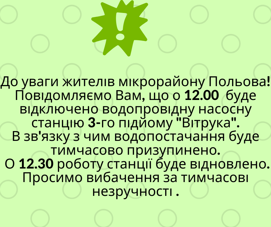 Зупинка водопровідної насосної станції 3-го підйому "Вітрука"