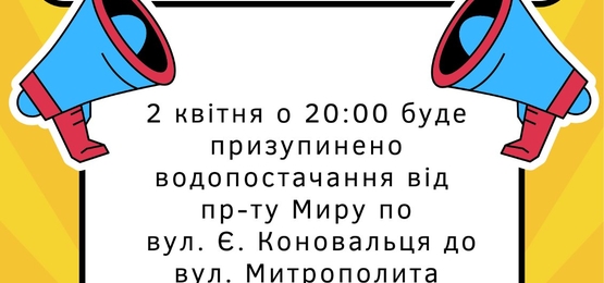 список адрес, за якими 6 квітня буде призупинено водопостачання