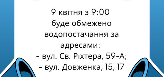 список адрес, за якими 9 квітня буде призупинено водопостачання