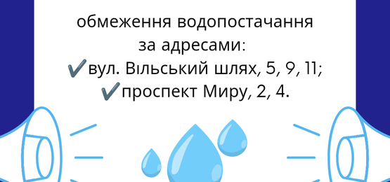 26 листопада буде обмежено подачу води до будинків, що знаходяться на вул. Вільський шлях, 5,9, 11 та проспекті Миру, 2, 4