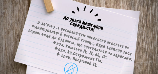 список адрес, за якими 6 грудня буде призупинено водопостачання